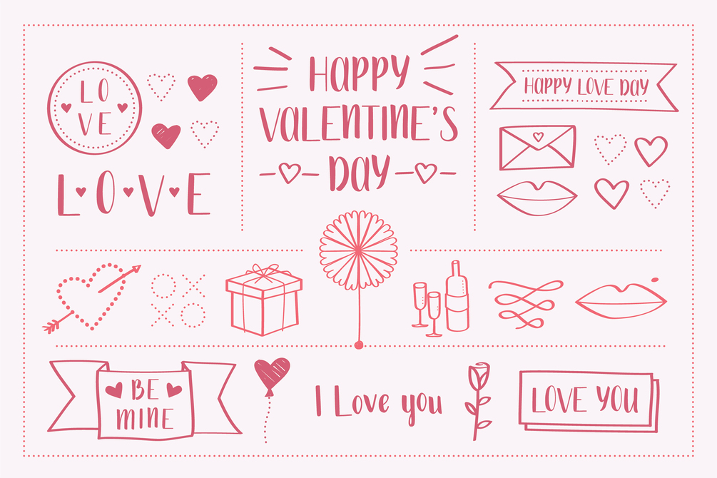 A set of handdrawn Valentines day illustrations. Simple and clean designs to make Your work pop and look unforgetable. As these elements are handdrawn they will make Your designs intimate and special.
