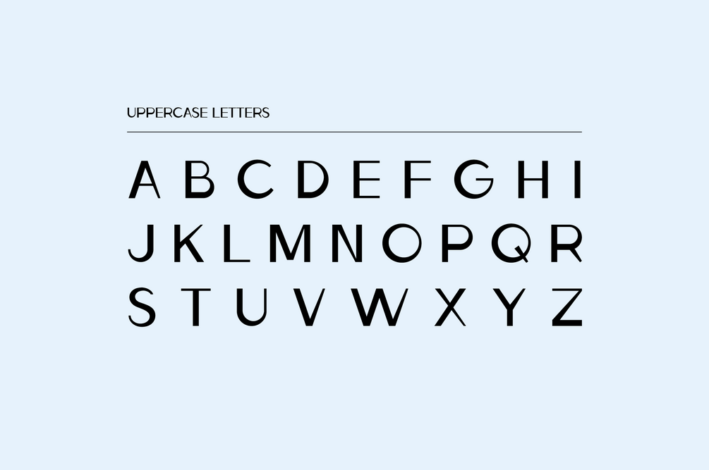 Ludeco Uppercase is a modern display font with an asymmetrical structure. Letterforms have some resemblance to classic Art Deco style, but with a twist - the weight of the letterform shifts by making a unique pattern.
